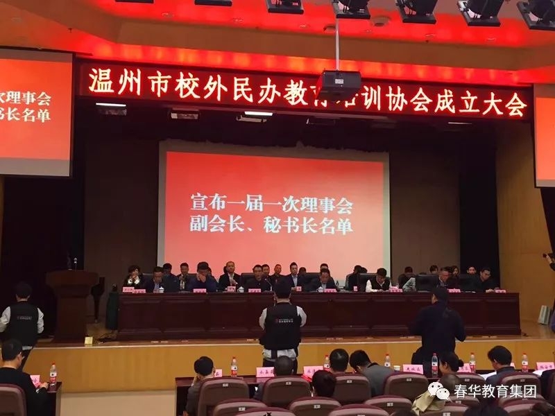 此次会议依次审议通过了《温州市校外民办教育培训协会章程》、《温州市校外民办教育培训协会会费标准及管理办法》、《温州市校外民办教育培训协会财务管理办法》、《温州市校外民办教育培训协会第一次会员代表大会选举办法》等文件,并通过投票选举产生了协会第一届理事会理事单位、副会长单位、会长单位、监事、秘书长,春华教育集团当选温州市校外民办教育培训协会常务副会长单位,瑞安春华当选温州市校外民办教育培训协会副会长单位,春华教育集团董事长南永生先生当选温州市校外民办教育培训协会常务副会长。