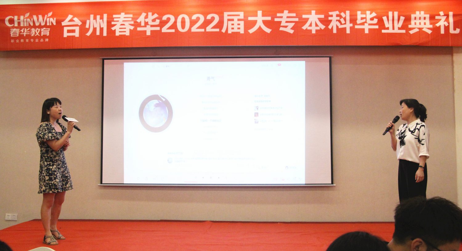 在主持人台州春华吕燕琴老师一番热情洋溢的开场词后,台州春华2022届大专/本科学历班毕业典礼暨答谢酒会正式拉开帷幕。